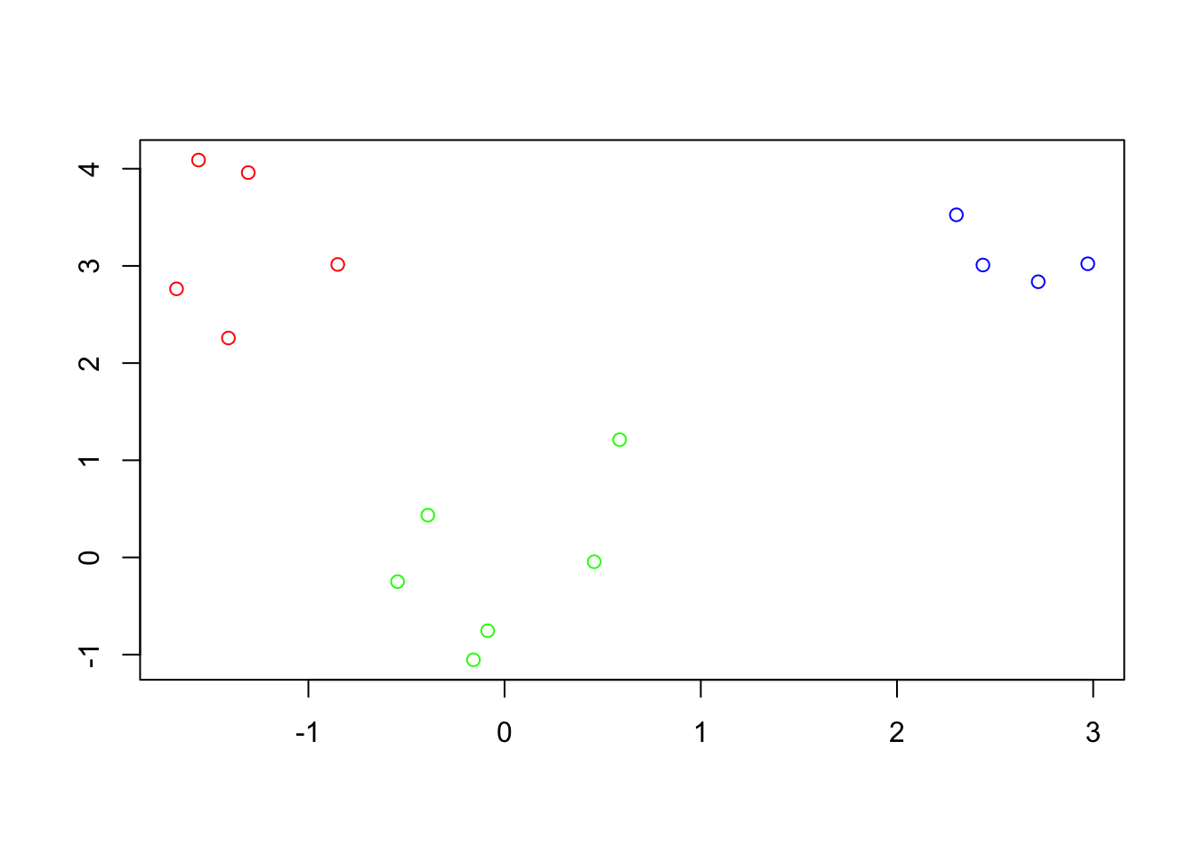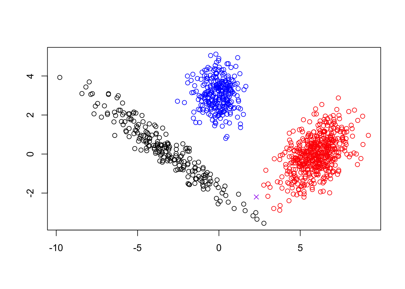 There is one main commonality (and associated set of notation) that will persist throughout this section. The ultimate goal of clustering is to separate data \(\vec{x}_1,\dots,\vec{x}_N\) into \(k\) groups. The choice of \(k\) is critical in clustering. Some algorithms proceed by iteratively merging observations until only \(k\) clusters remain (hierarchical methods). Others (center- and model-based and spectral methods) treat clustering as a partitioning problem, where each element of the partition corresponds to a pre-specified number of clusters. Algorithm dependent methods for choosing \(k\) can be used for deciding optimal number of clusters without a priori knowledge.