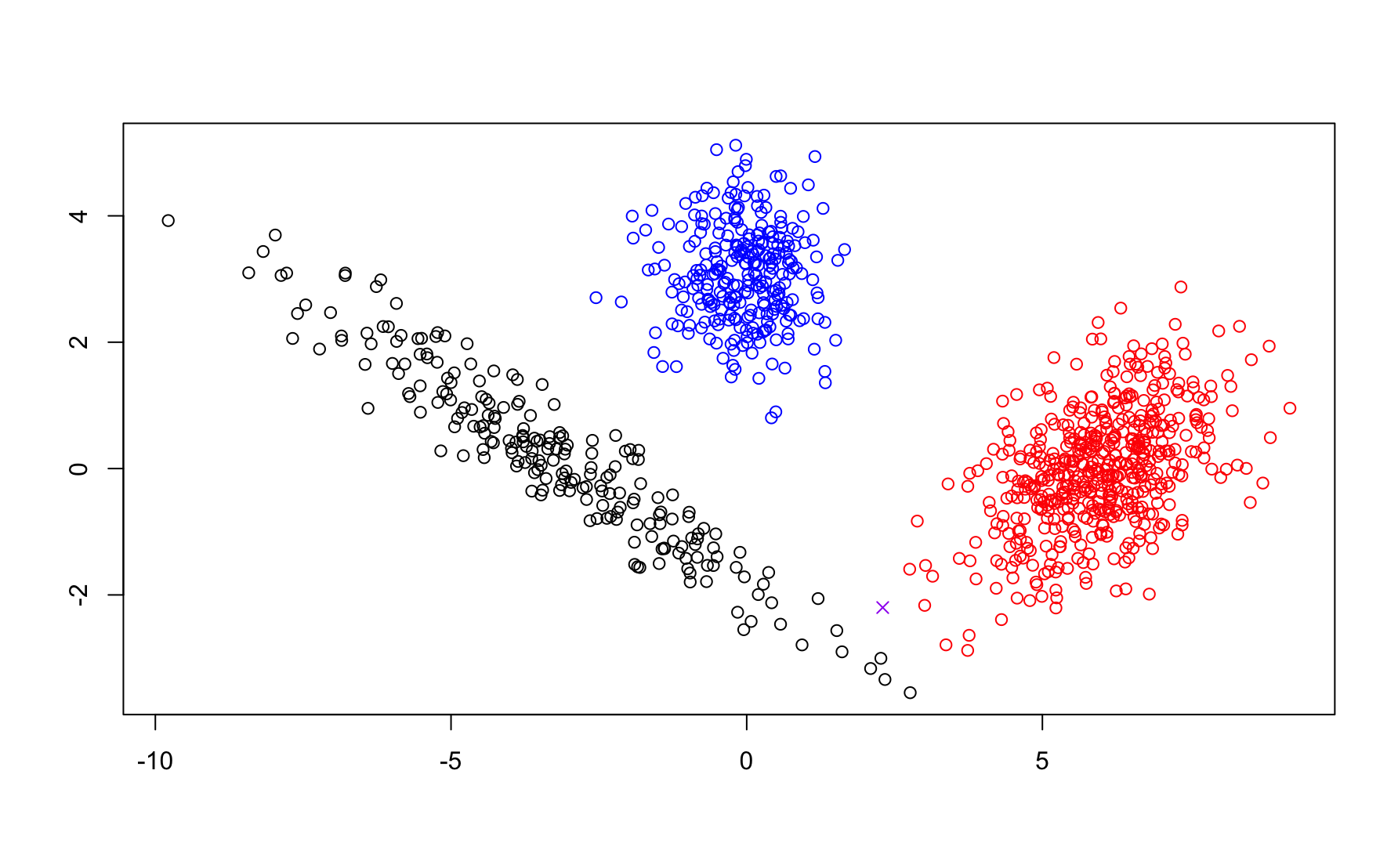 In the theoretical worst case, Lloyd’s algorithm can take\(\propto N^{k+1}\) iterations to converge, but it is typically very fast in practice. Most implementations, allow the user to set a maximum number of iterations and converge to approximate suboptimal solutions if the maximum number of iterations is reached. PAM and greedy \(k\)-center algorithms are typically much, much slower. However, once any of the clustering algorithms are complete, new data can be merged into cluster with nearest center. Other methods we’ll discuss later cannot incorporate new data without running the algorithm from scratch.